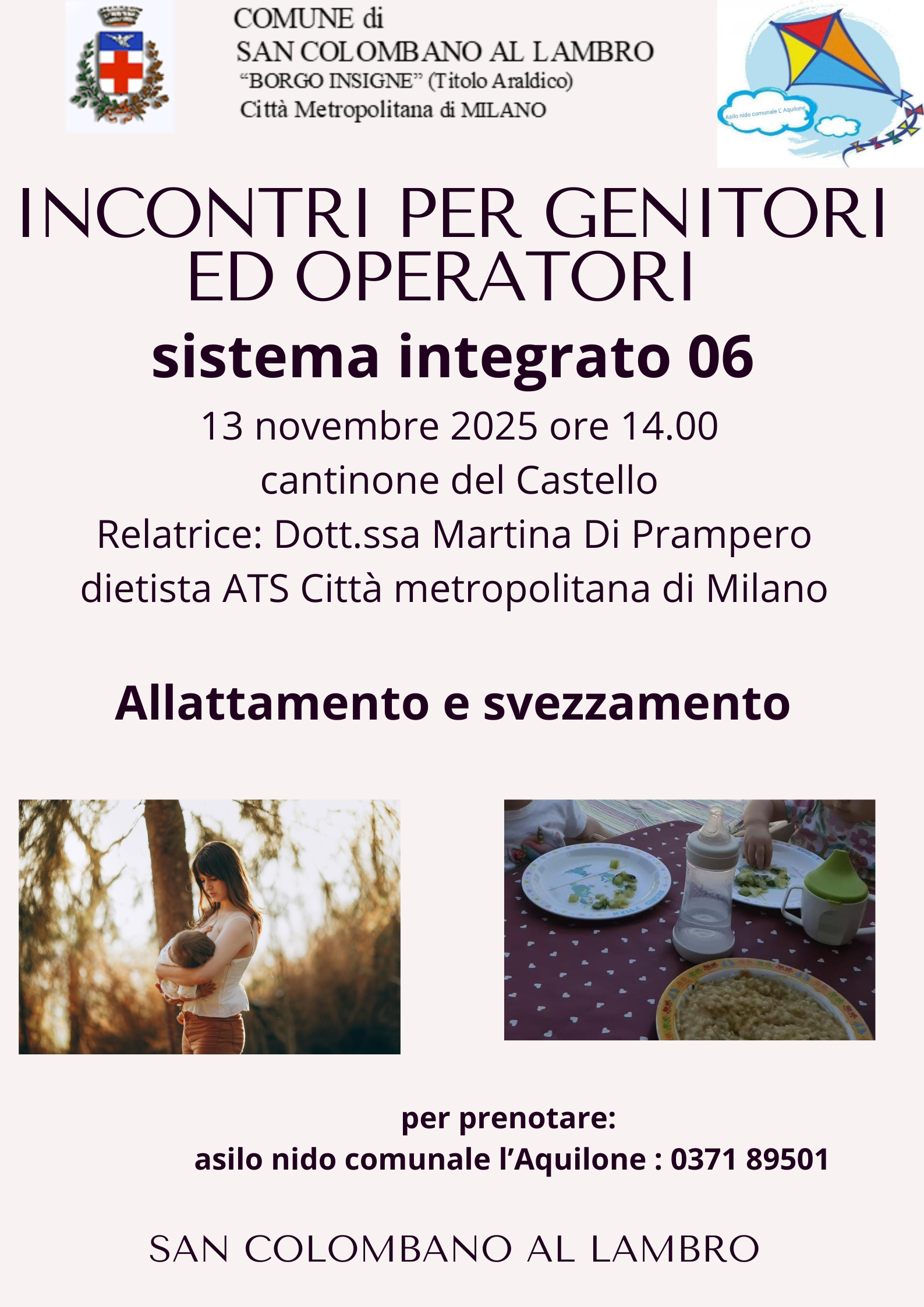 All'interno del Sistema integrato 0-6 l'asilo nido comunale l'Aquilone e il Comune di San Colombano al Lambro organizzano un primo incontro dal titolo :